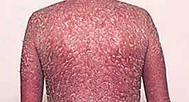 -الصدفية المحمِّرة للجلد: نوع خطير يغطي الجسم كله بطفح شديد الحكة.